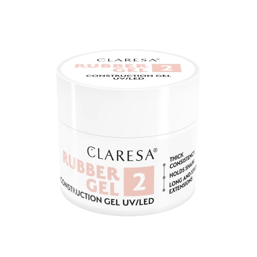Rubber Gel Claresa je profesionálny gél určený pre stylistky, ktoré hľadajú trvácnosť a pohodlnú prácu. Jeho hustá, na teplotu odolná formula umožňuje presné modelovanie a predlžovanie nechtov, pričom zostáva stabilná aj počas horúcich dní. Vďaka tixotropii gél nesteká do kožičky a hmota sa dokonale vyrovnáva, čo uľahčuje rovnomerné nanášanie produktu, aj pre začiatočníčky. Môže sa používať samostatne, bez hybridného laku – stačí baza a top. Ideálny na prirodzené manikúry v odtieňoch nude.